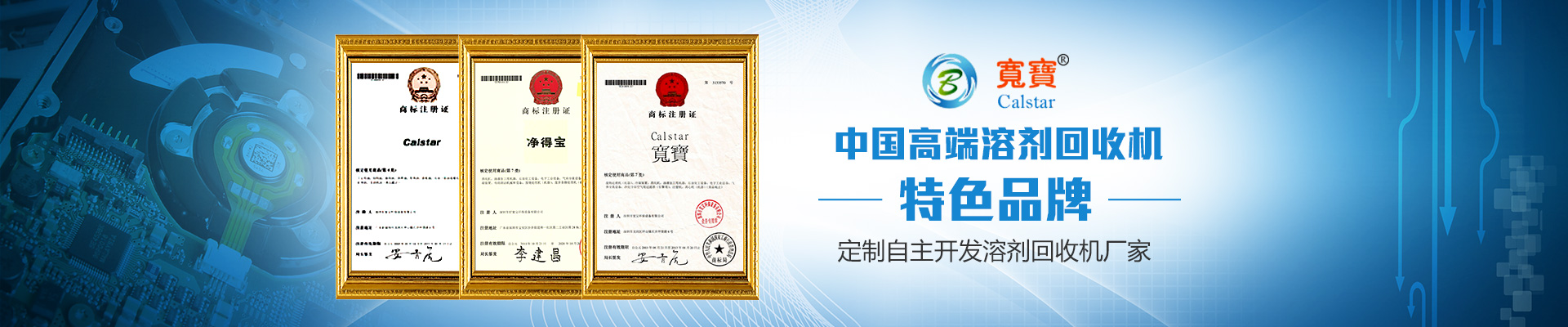 Calstar品牌源于1984年成立的美國加州公司Calstar Associates Company(美國凱勒達有限公司),Cal是加州California英文縮寫, star意為“明星”,Calstar的含義是“加州之星”。Calstar寬寶創(chuàng)業(yè)團隊形成于1995年,名稱源“寬以待物,變廢為寶”2001年在大陸成立深圳市寬寶環(huán)保設備有限公司,專業(yè)從事溶劑回收機的研制和銷售。2003年設立臺灣寬...